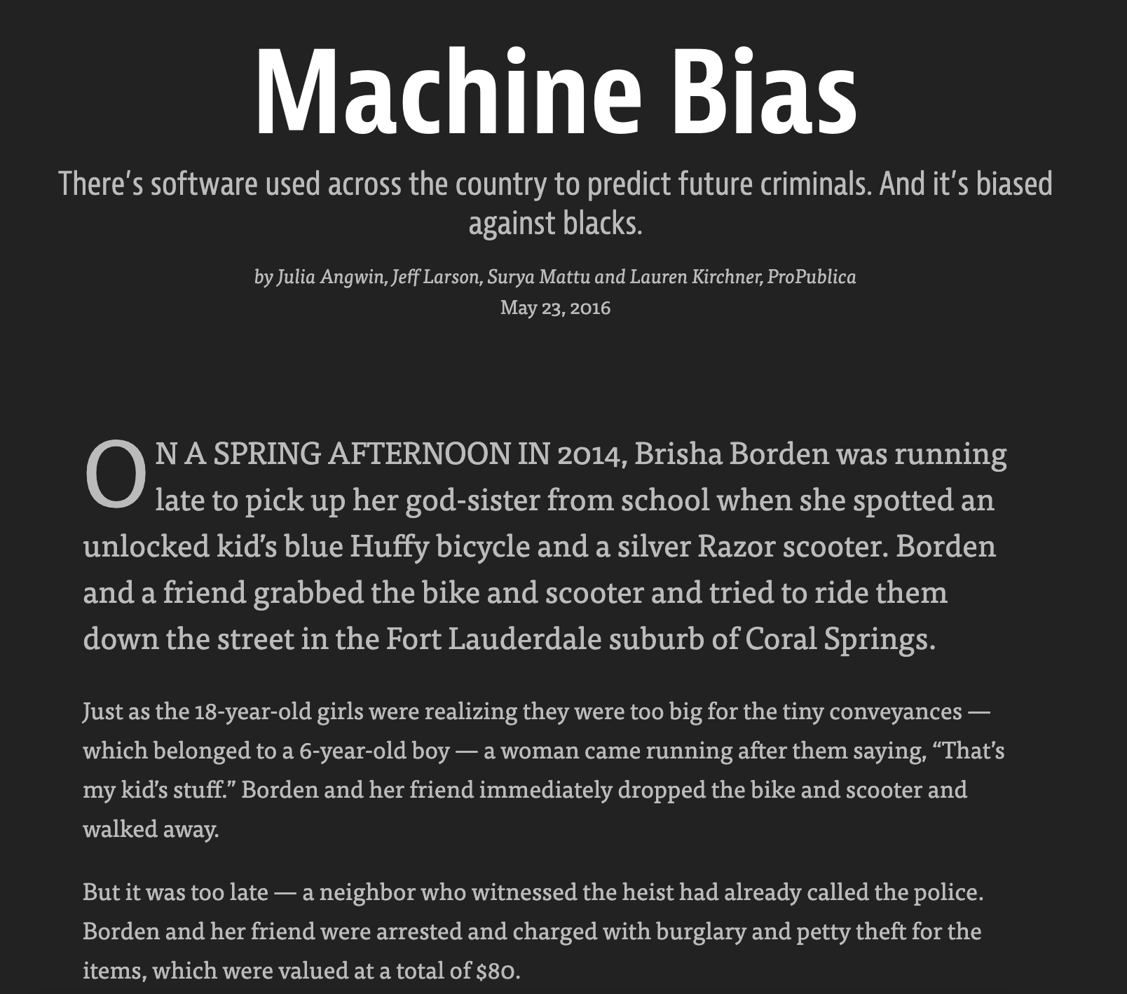 Machine Bias by Julia Angwin, Jeff Larson, Surya Mattu, and Lauren Kirchner