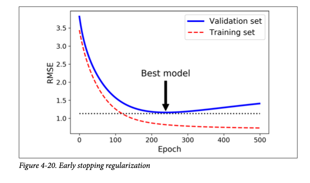 For example, in Figure 6.12 we would stop training after approximately 240 epochs.