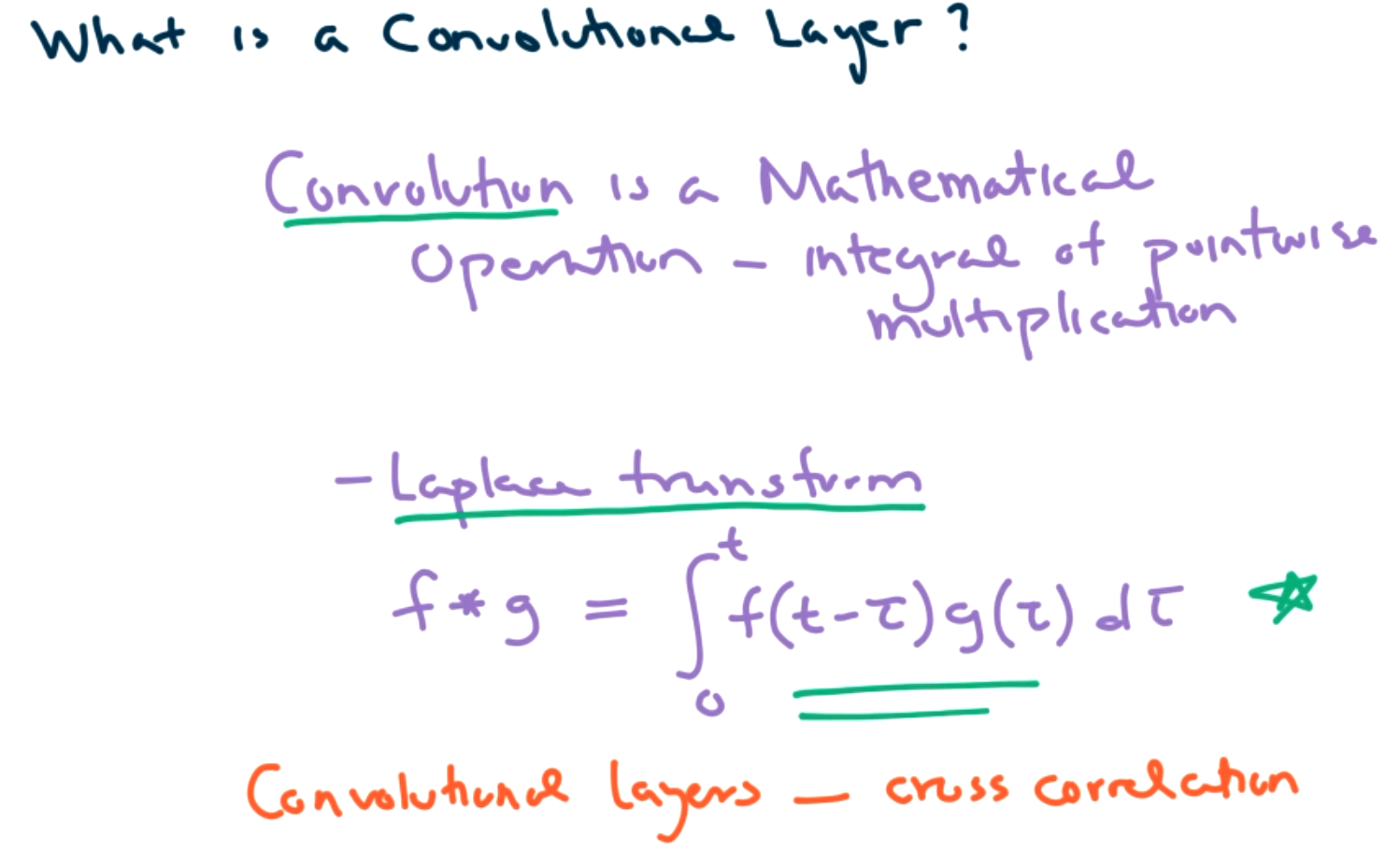 Convolution is a mathematical operation. For example, the Laplace transform features the integral of pointwise multiplication.