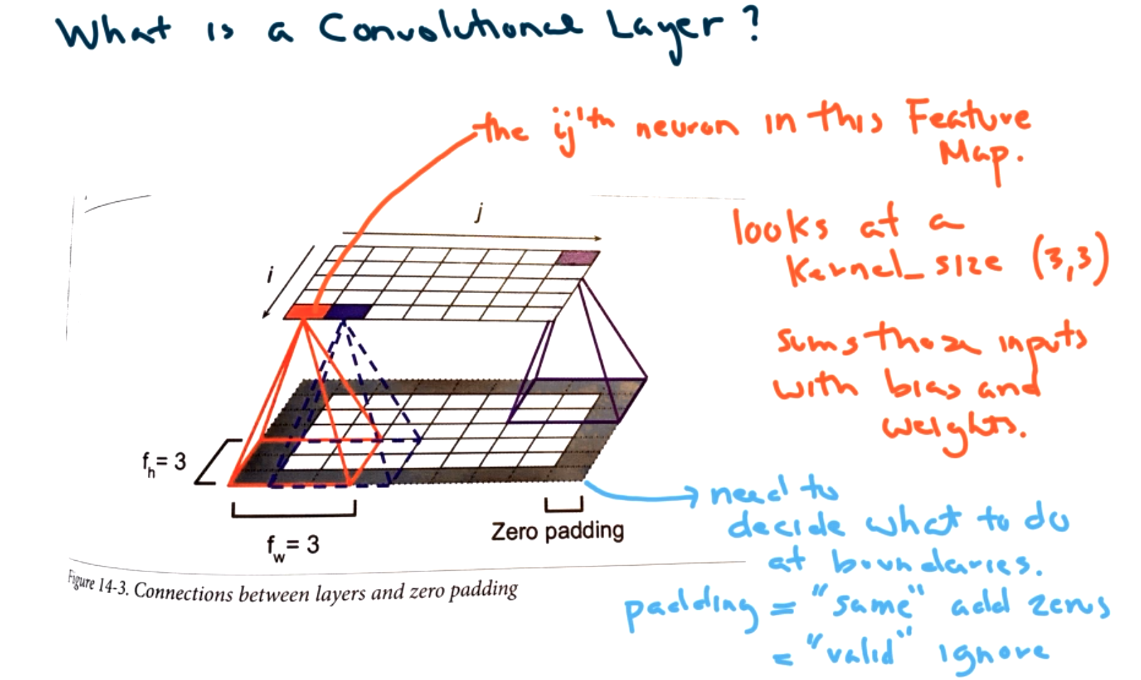 One issue that must be decided is what to do at the boundaries of the image. We could fill with zeros (padding="same") or we could ignore the boundary points (padding="valid").