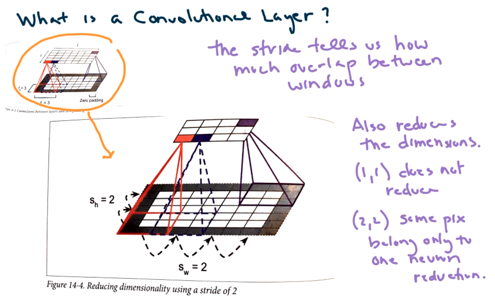 What is a convolutional layer? Each convolutional layer maps a subset of the image to a single neuron in the next layer. Each neuron is connected to a small window of pixels. The windows overlap and cover the entire image. Convolutional layers may or may not reduce the size in the layers depending on how the windows overlap. The input layer is not flattened. It is a tensor. (contains width, height, certain number of channels) The number of channels depends on the color (1 channel for gray scale, 3 channels for RGB, all layered on top of each other.)