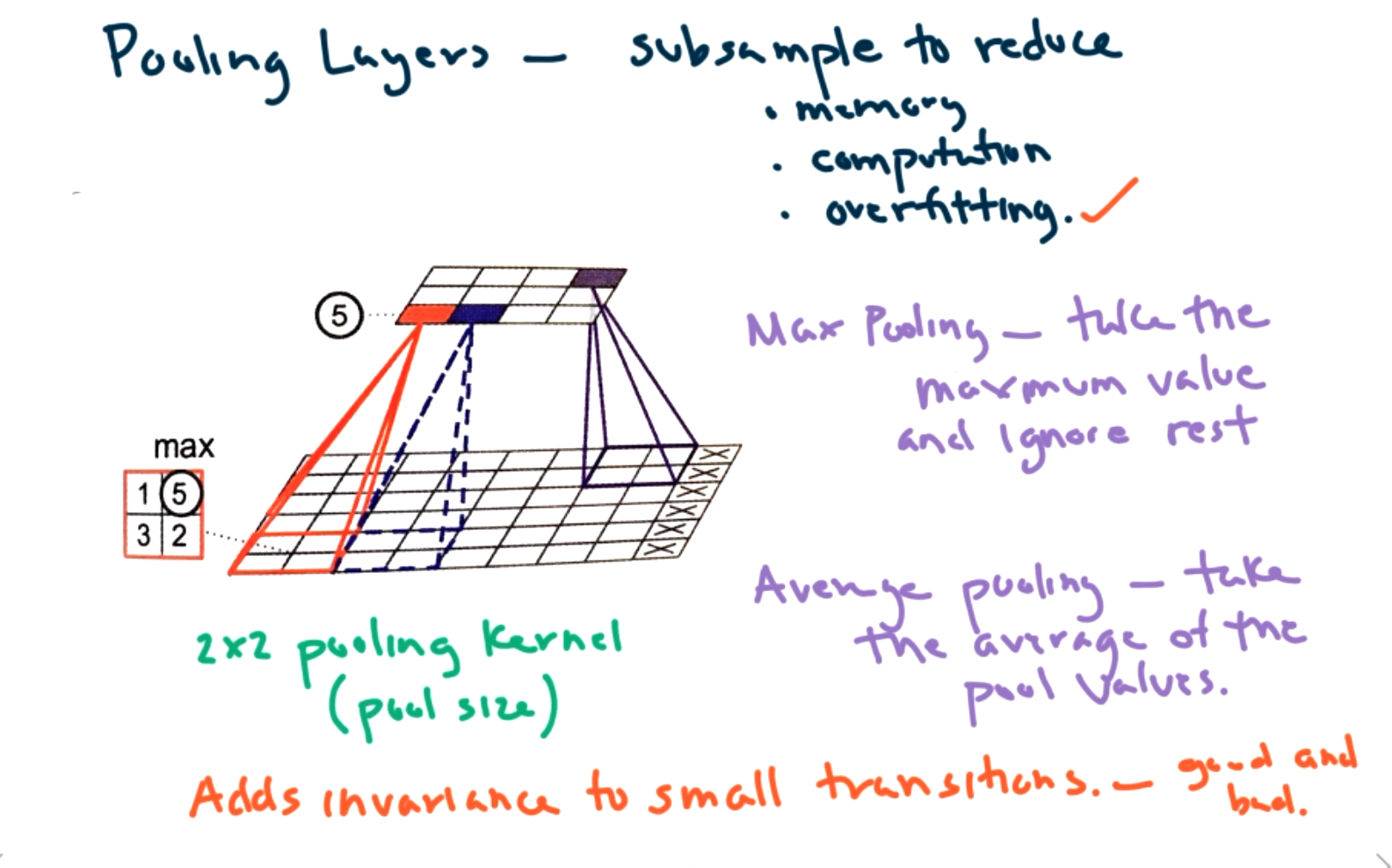 One consequence of pooling is to add invariance to small transitions. This can be both good and bad. For example, if you want to classify a dog in the snow, you might want to ignore small bits of snow on the dog. Of course, if you want to identify that it is snowing, then you won't want to ignore that information.