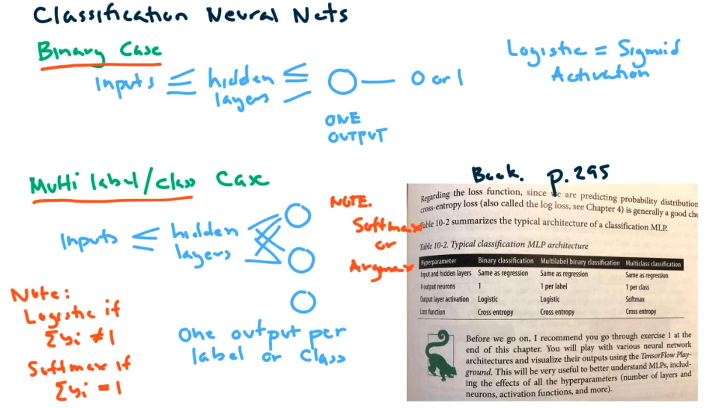 Review of sequential model functional model callback -- keep track of runs and keep best one visualization tool called tensorboard Regression Neural Net and Keras Tools copy from notebook?? Idea of sequential model is that one layer flows to the next and all inputs are used. bias term 8+1 * 30 + 31*1 parameters model = keras.models.Sequential([ each layer]) model.compile() SGD ok because model is simple. history=model.fit() what should we see in loss? decrease but could increase a little stochastic gradient descent might move a little randomly model.evaluate(testing data) Functional API think about layers as functions, so we specify input not just assume all entries from last layer. We can think about deep and wide, some features could go deep (many hidden layers) or wide (not through all layers) keras.backend.clear_session() input_ = keras.layers.Input(shape=X_train_s.shape) hidden1=keras.layers.Dense(30, activ)(input_) hidden2=keras.layers.Dense(hidden1) concat=keras.layers.concatenate([input_,hidden2]) output=keras.layers.Dense(1)(concat) model= keras.models.Model(inputs=[input_],outputs=[output]) When wide and when deep? based on data but mostly experimentation Could help if we had really different types of data that we wanted to use for a single answer. Maybe voice data and image data. Really helpful tools saving and restoring a model -- keep good notes about what you are trying while experimenting -- it can take a long time to train and don't want to redo that -- model.save("name.h5") keras.models.load_model("name.h5") save model in the .fit command. callback build model, compile name_cb=keras.callbacks.ModelCheckpoint("best",save_best_only=True) model.fit( ..., callbacks=[name_cb]) There's a lot more to play with here! Explore the documentation!! Tensorboard Pretty cool!Subsection 9.6 Hyperparameter Tuning