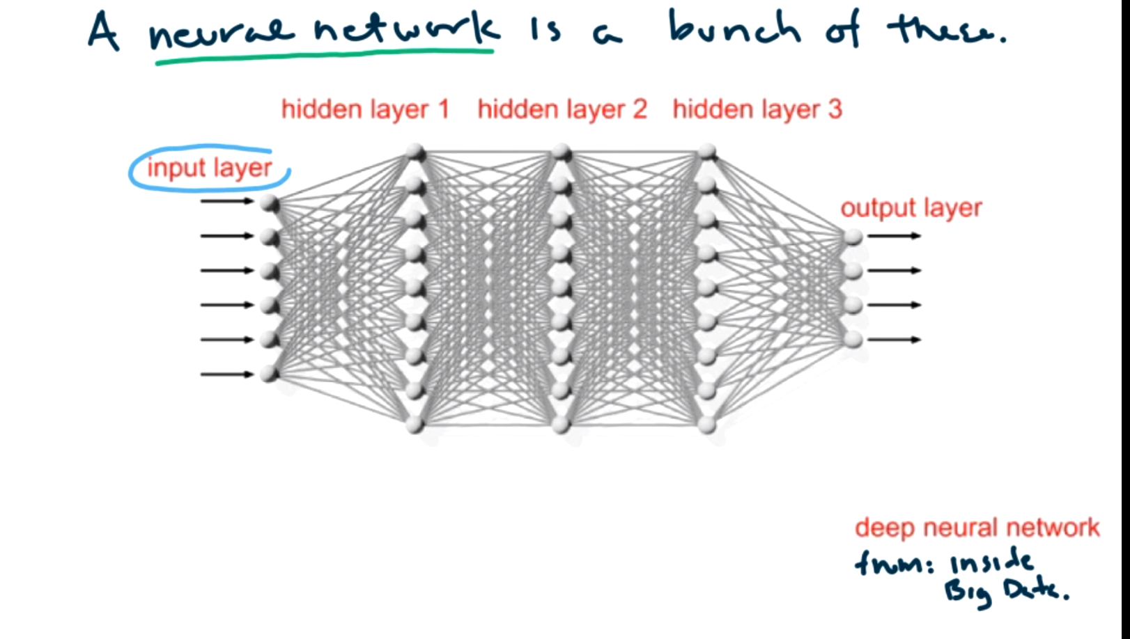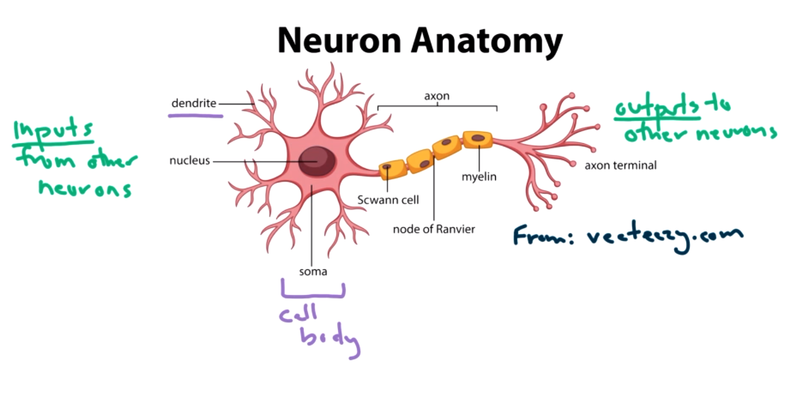 Recall, a neuron has an input layer, an output layer, and possibly any number of hidden layers, as in the image below.