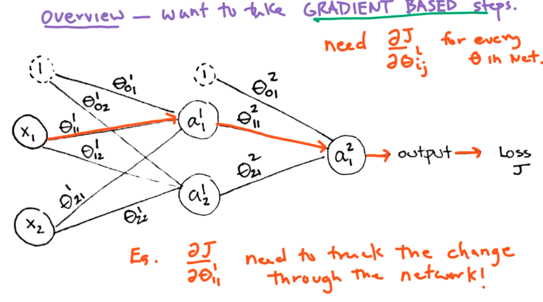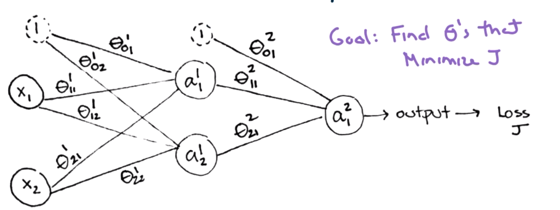 Remember that the goal in a neural network is to find \(\Theta\) values that minimize a loss function \(J\text{.}\)
