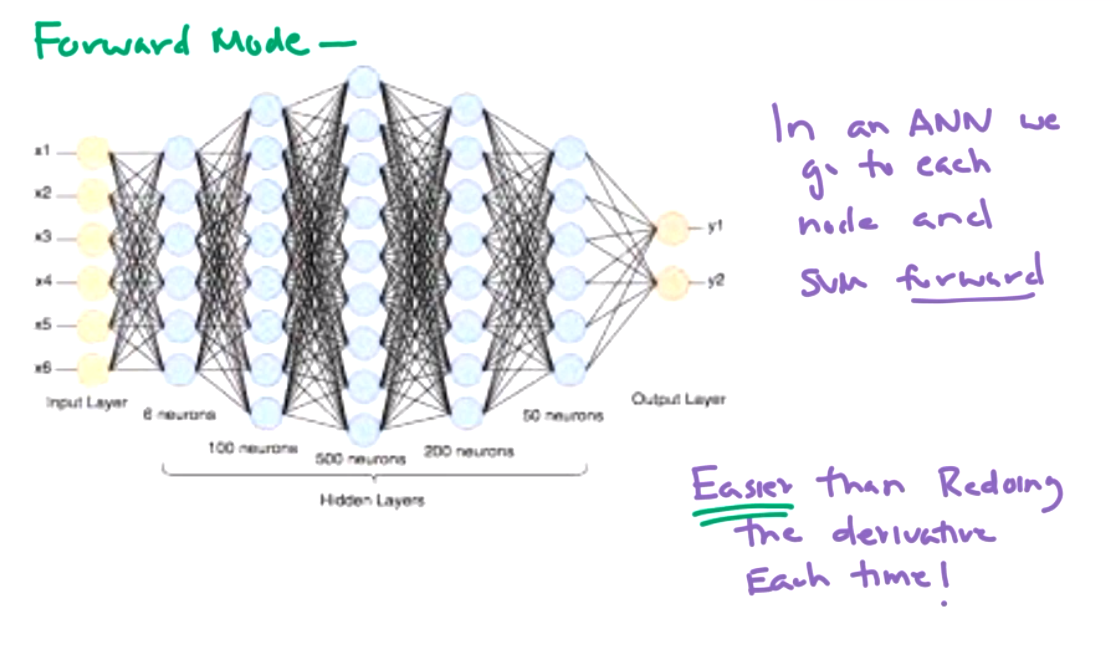 - backward-mode differentiation (Also called backprop or reverse node.)