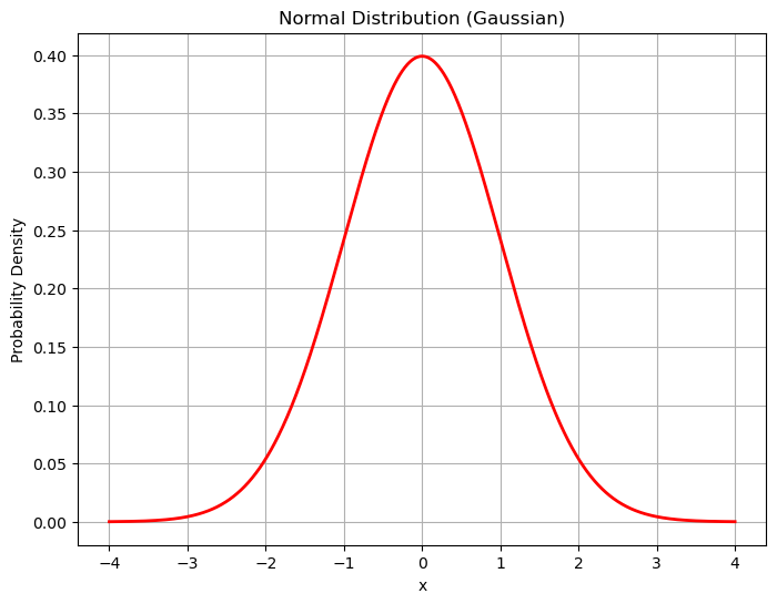 The Normal Distribution also called the Gaussian Distribution is a symmetry bell shaped curve that has most of it’s mass around the mean.
