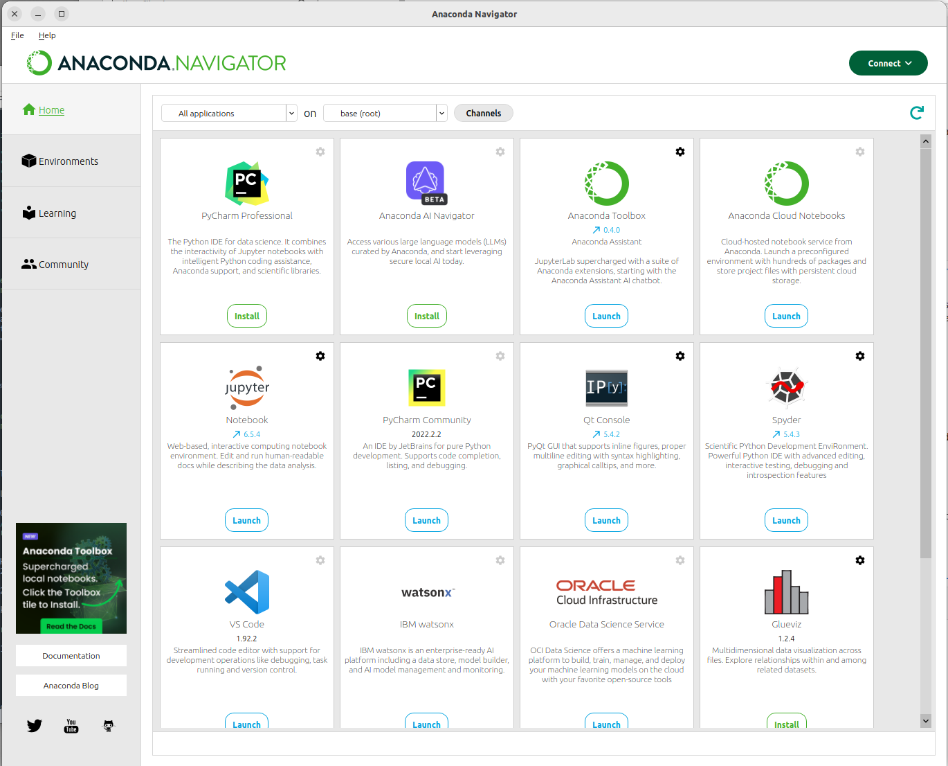 Once Anaconda is installed open up the navigator. You don’t need to sign up for an account! It should look something like this.