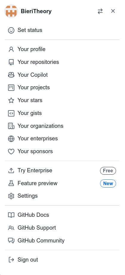 Enter Credentials - SWITCH TABS to your GitHub account and click on the user icon in the top right corner to get the drop down menu. In the image below my icon looks like an orange jack-o-lantern face, yours will be some abstract design.