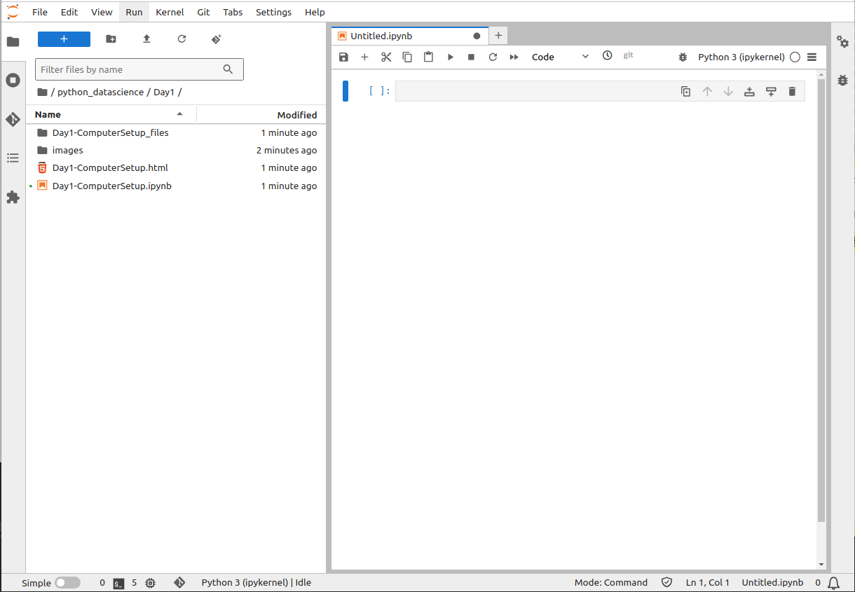 - Jupyter notebooks are organized in cells (gray space). This is where you can type in your code. To run the cell either push the run button at the top of the notebook, or press SHIFT-ENTER.