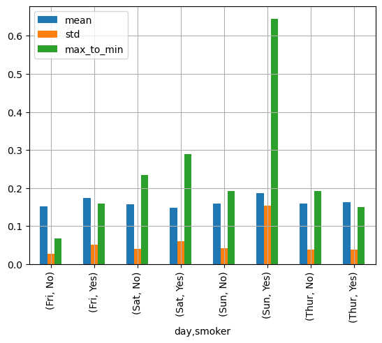 Thur | 2.500000 | 2.352941 | 2.459016 | 0.160311 | 0.163863 | 0.161301 | |