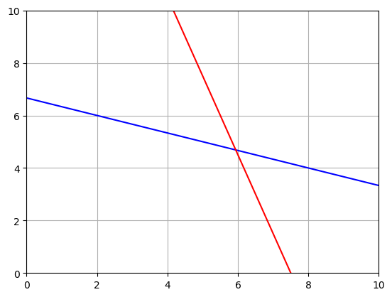 Use numpy to solve for the intersection point.