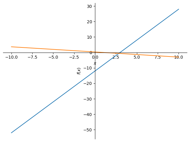 \[ y = 4x-12 \] \[ y = \frac{1-x}{3} \]